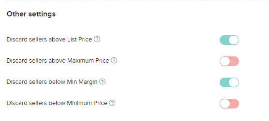 Verkäufer unter Mindestpreis verwerfen: Erfordert, dass ein Mindestpreis zur Feed-Datei hinzugefügt wird, den Sie selbst festlegen. Wenn die Einstellung aktiv ist, werden alle Verkäufer unter diesem Preis von der Berechnung ausgeschlossen und nicht in die dynamische Preisgestaltung einbezogen.