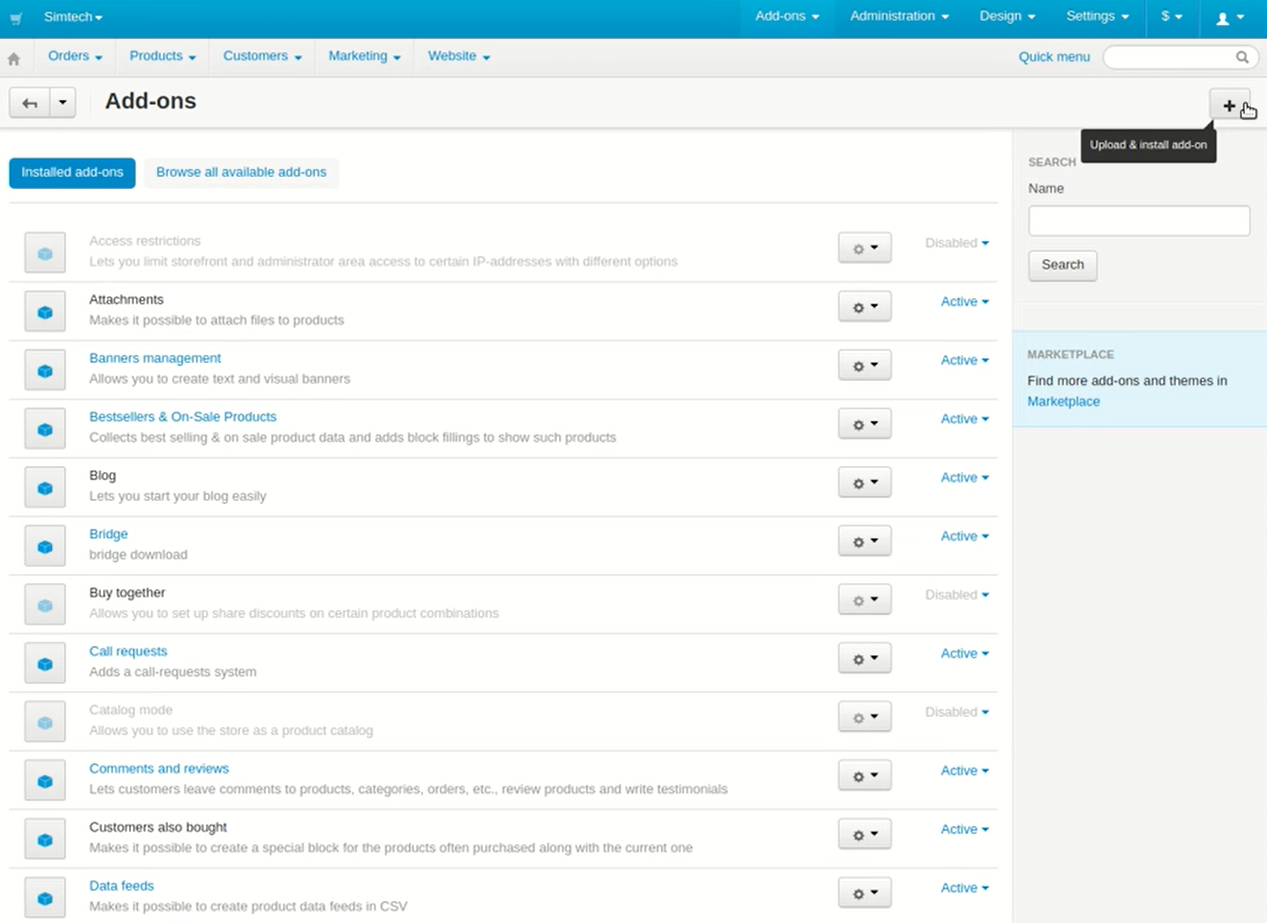 Klicken Sie darauf, um ein Add-on hochzuladen & zu installieren.