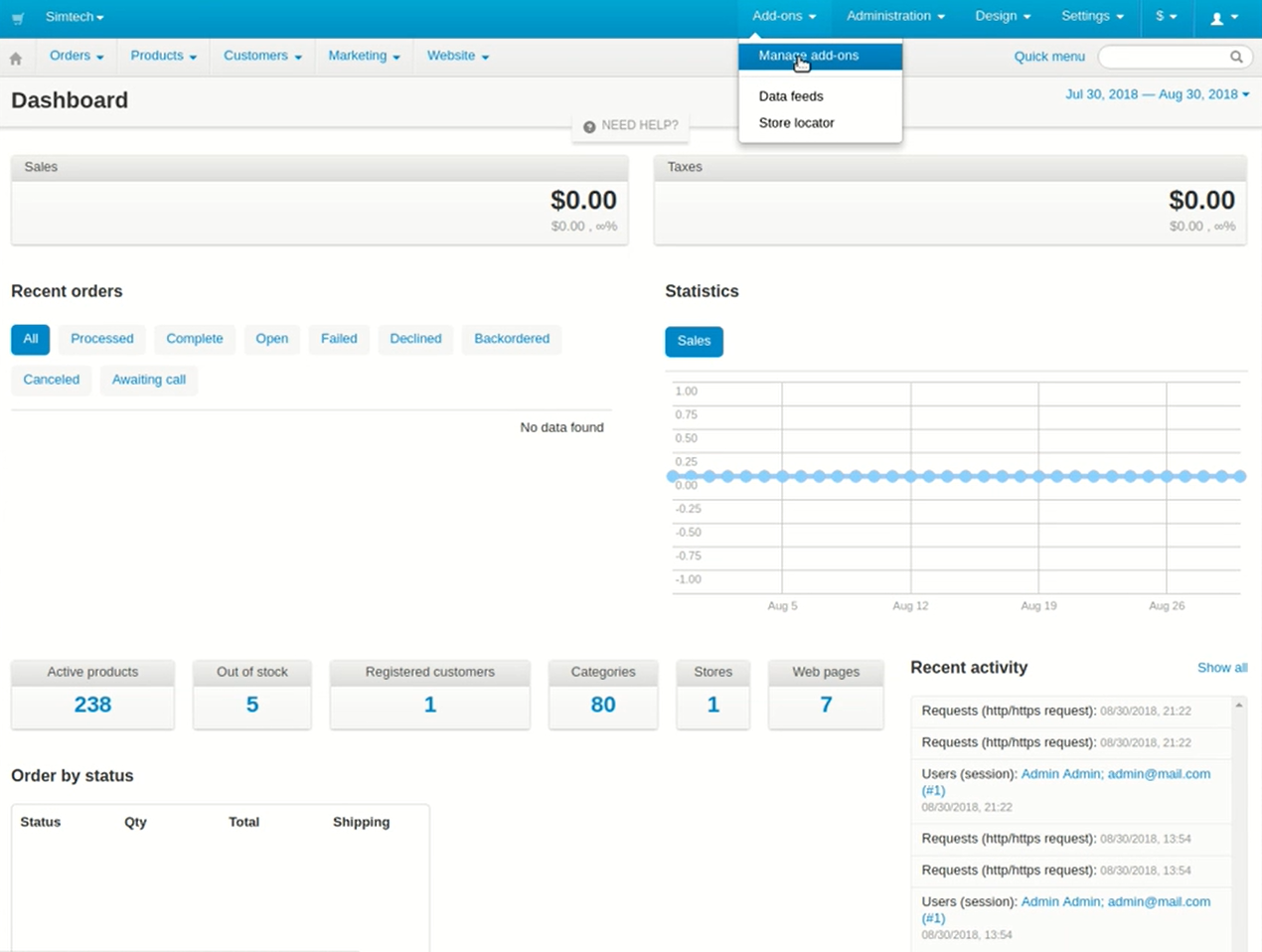 1. Gehen Sie in der oberen Leiste zu Add-ons > Add-ons verwalten.