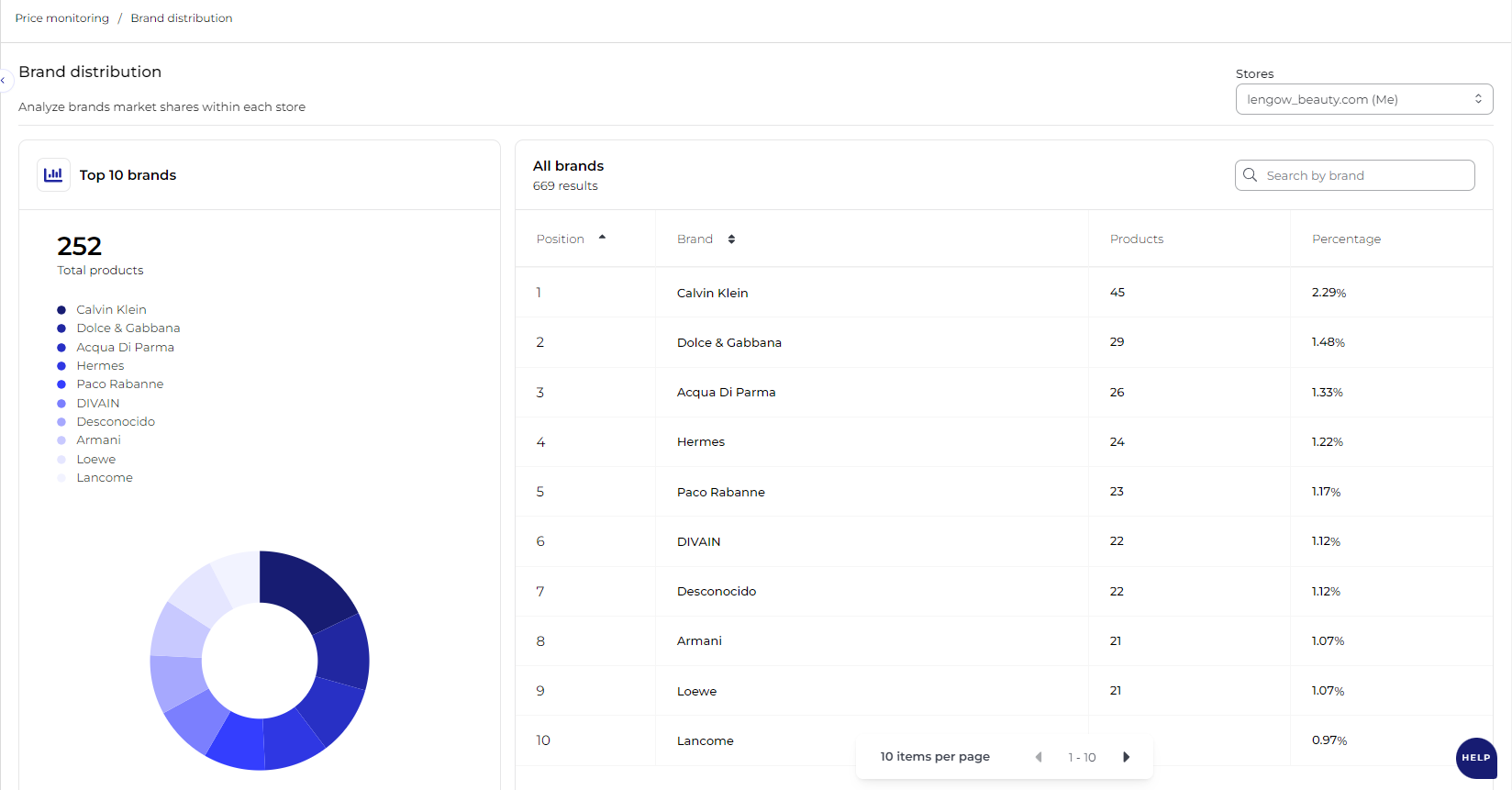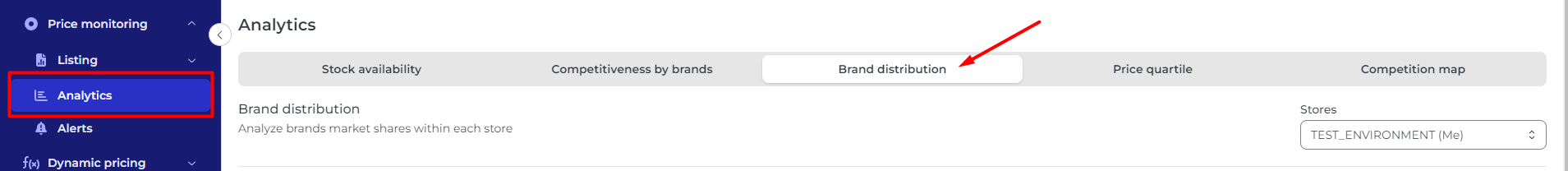 This module is accesible from Price monitoring > Analytics> Brand distribution