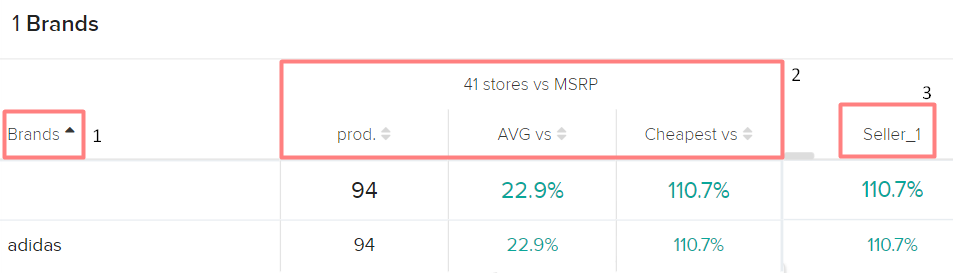 2. Stores vs. MSRP: This chart compares your MSRP with the prices set by sellers, organized into three columns: