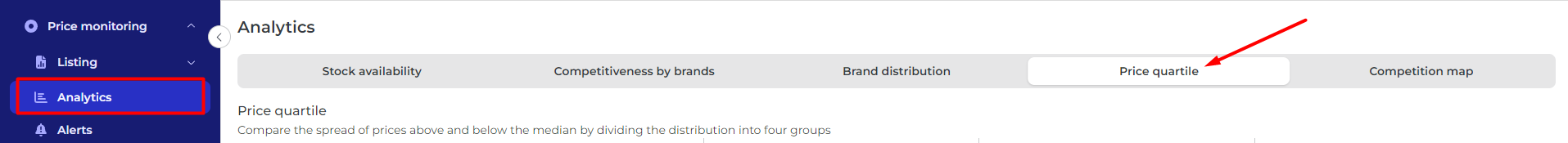 This graph provides valuable insights into the price distribution of both your catalog and your competitors'. By analyzing it, you can easily identify whether other sellers predominantly offer high-end, mid-range, or low-end products. This information is crucial for strategically positioning your own products and can help you spot opportunities to adjust your pricing, target different market segments, or capitalize on gaps in the competition's catalog.