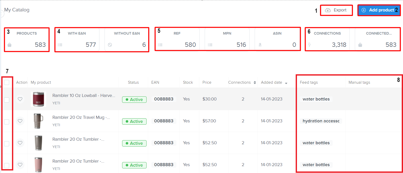 5. Other codes: See the amount of your products with other codes like REF, MPN or ASIN.