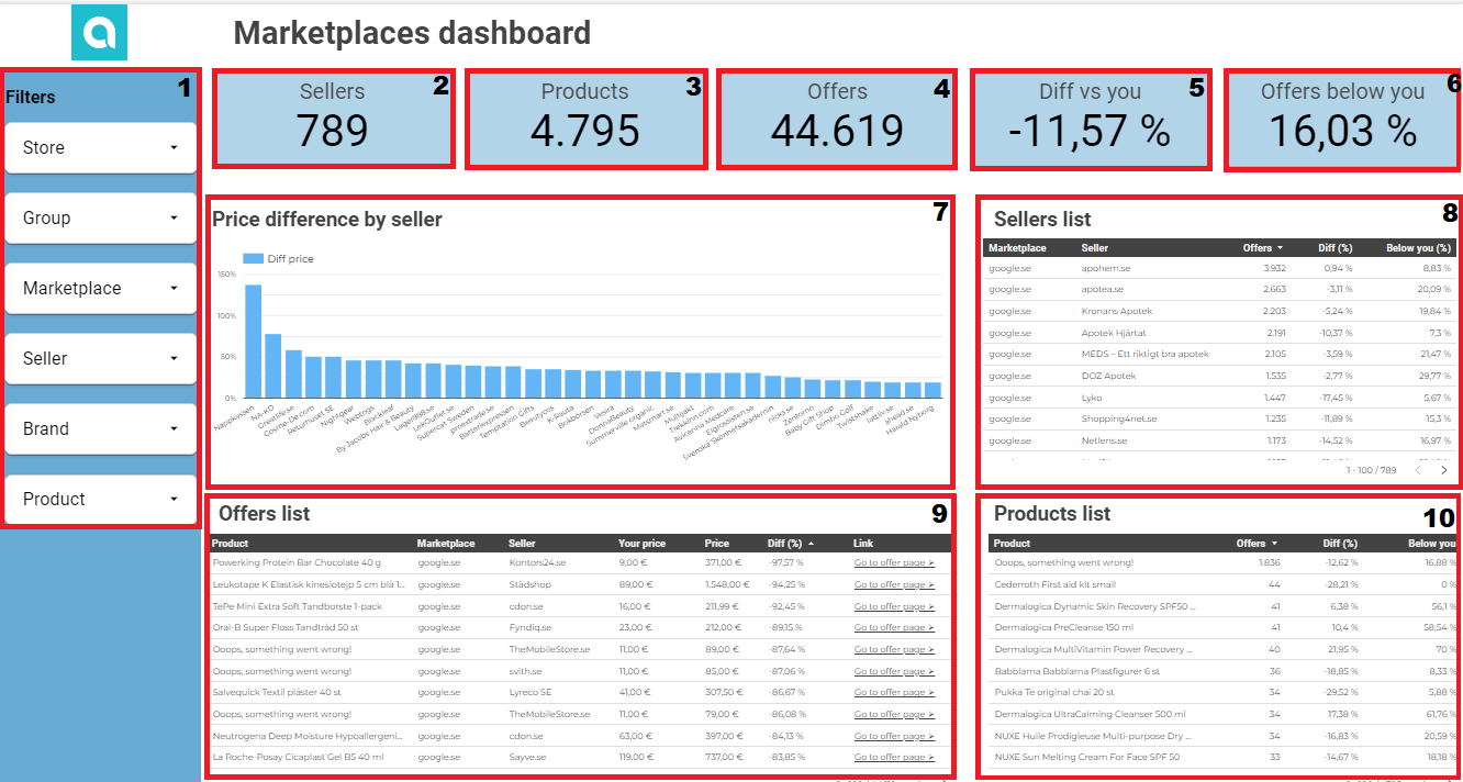 c. Marketplace: Filter the different marketplaces that you are currently following.