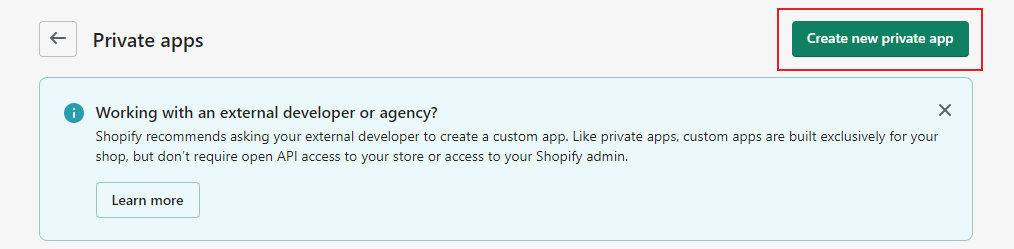 4. Click Create new private app.