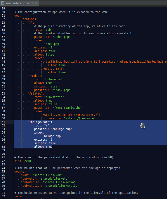 To upload the bridge to Magento Commerce cloud stores and make it available on the URL, the store developer should do the following steps:
