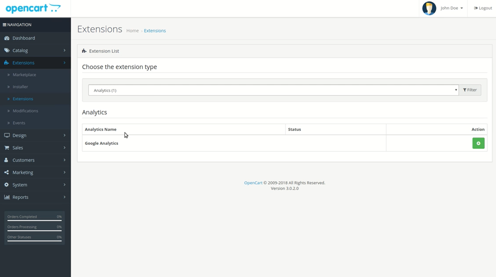 Click on the extension type Analytics, and on Analytics Name.
