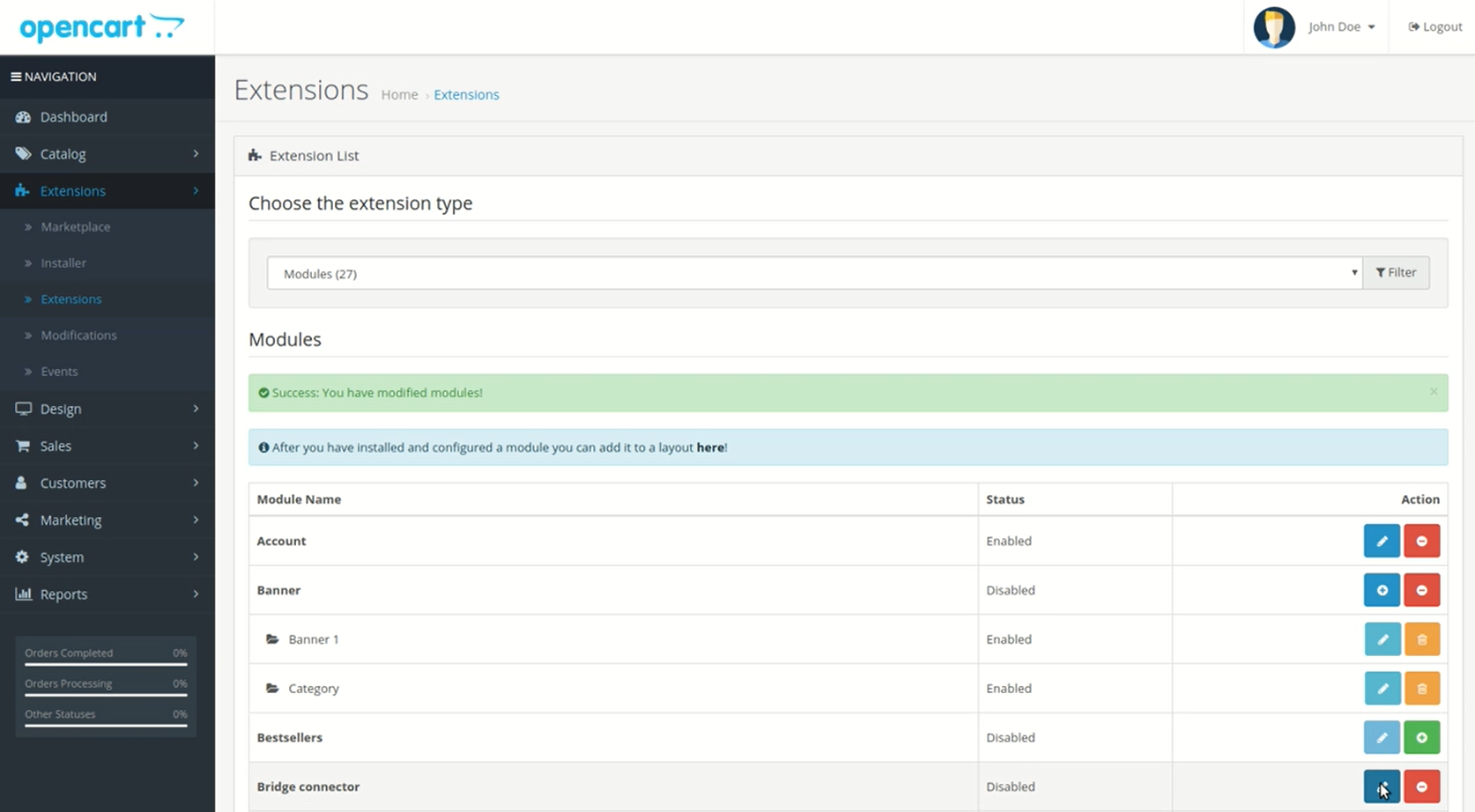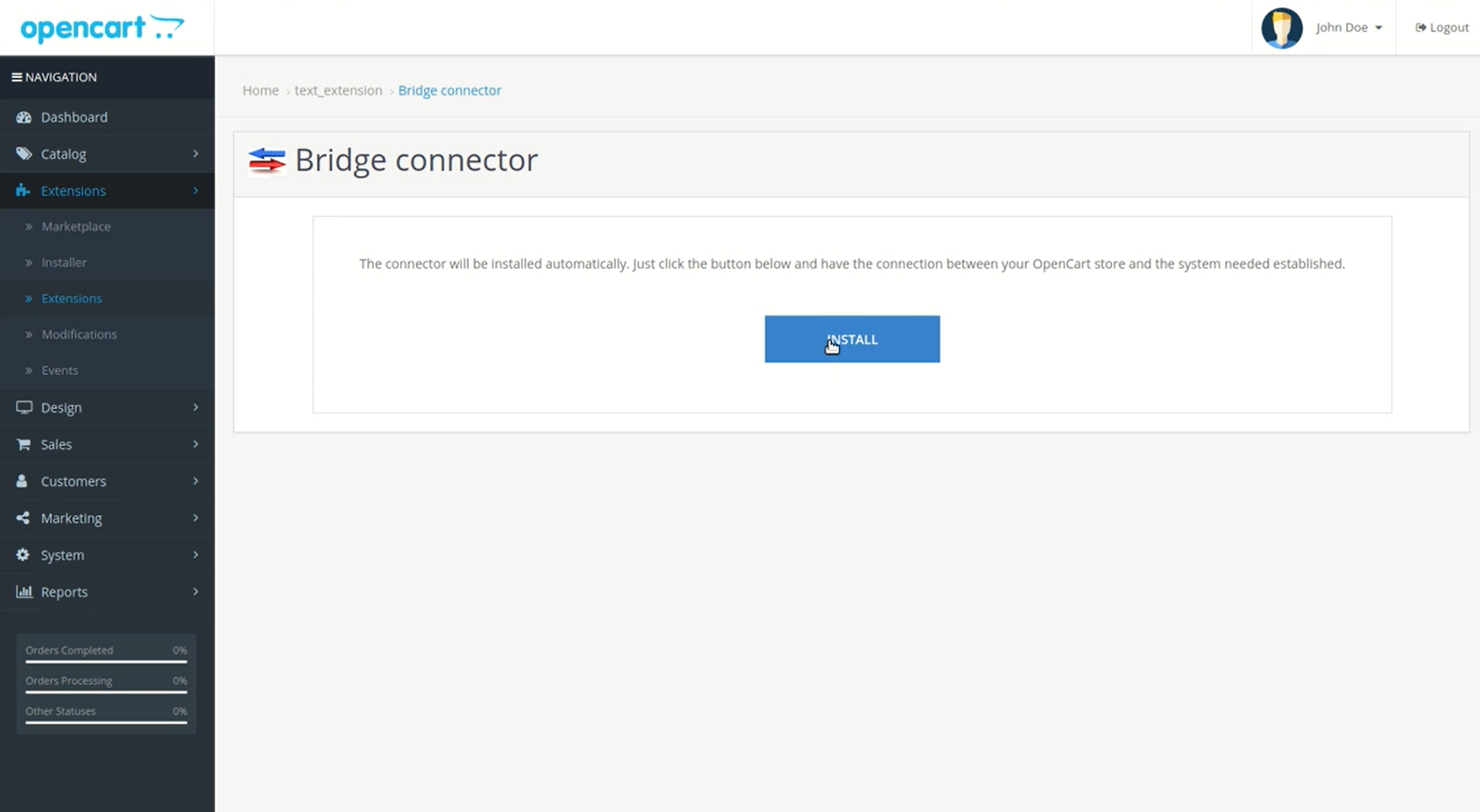1. From the leftside menu go to Extensions > Installer.