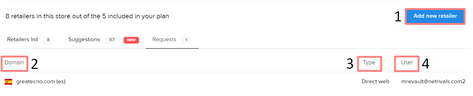 2. Dominio: Lista de retailers y marketplaces que has solicitado seguir.