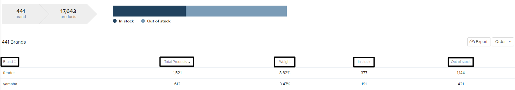Peso: Porcentaje de una marca sobre el total del catálogo