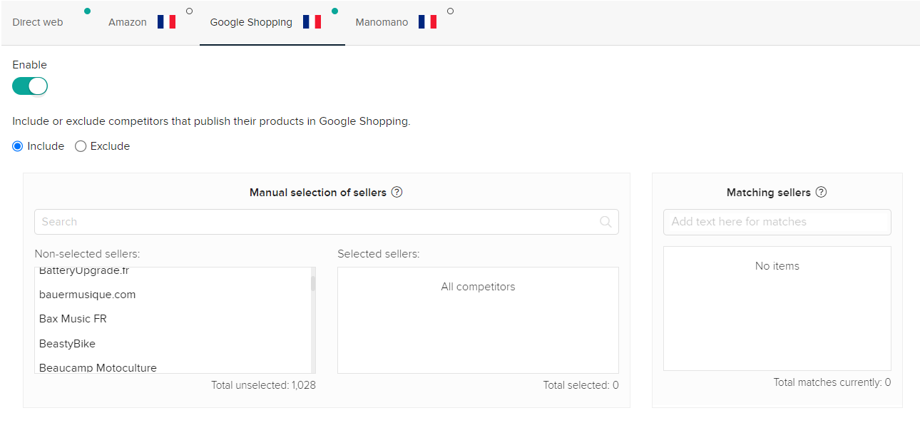 Puedes elegir qué vendedores tomar en cuenta o no en esta regla específica. Podrás seleccionar vendedores específicos para cada uno de los marketplaces que estás monitoreando en tu plataforma Netrivals.