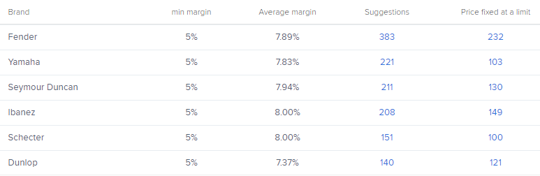 Vous pouvez obtenir une vue plus globale des marques et des suggestions au sein de celles-ci :