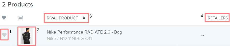 1. Nella prima colonna c'è il tuo prodotto, e le colonne successive indicano i diversi marchi e i prodotti collegati ai tuoi se ce ne sono (a causa delle stesse caratteristiche, ecc.).