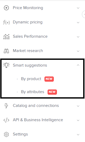 Il modulo di suggerimenti intelligenti genera raccomandazioni per potenziali corrispondenze basate su diversi attributi: Titolo/Titolo simile, Foto, Riferimento (REF) e MPN. Può essere localizzato nella barra laterale sinistra come il resto dei moduli: