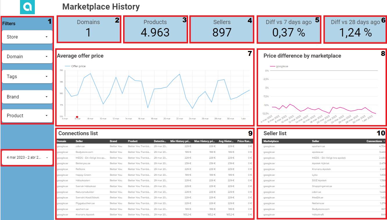 e. Prodotto: Filtra i diversi prodotti collegati nei mercati.