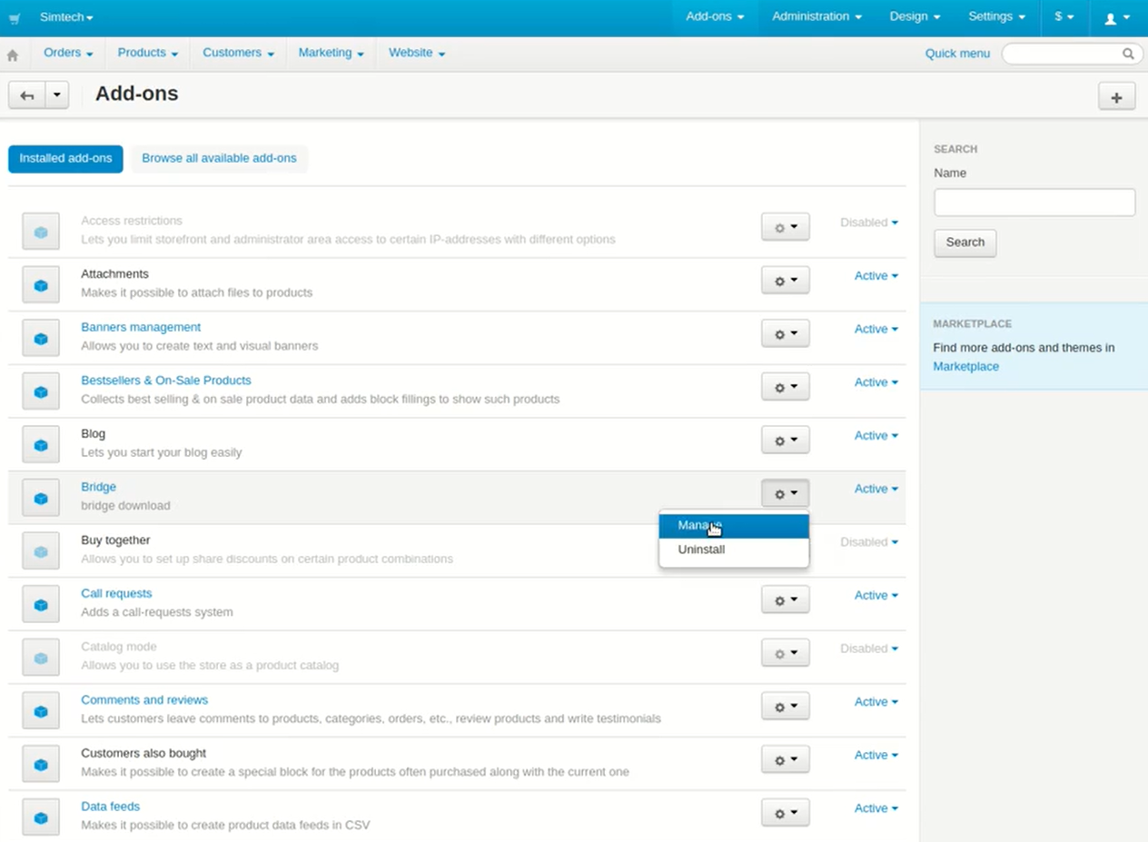 4. Vedrai il Bridge nell'elenco degli add-on.