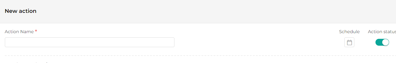 Nuova azione Aggiungi un Nome azione/Titolo che rappresenti l'azione stessa e indica se sarà attiva o meno cliccando su ON/OFF.