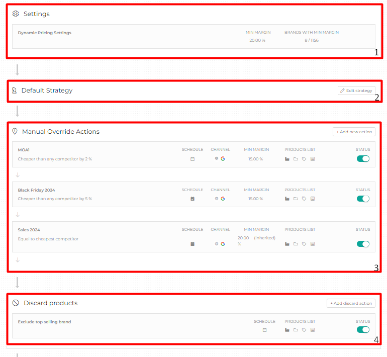 所有这些设置都需要在源文件中提供有关列表价格、最低利润、最高和最低价格的信息,并由我们的团队激活。