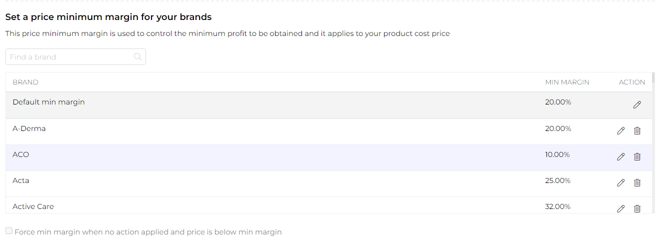 '在没有应用任何操作时强制最低利润率'功能默认不激活,如果您想激活它,您需要联系您的CSM或支持团队。