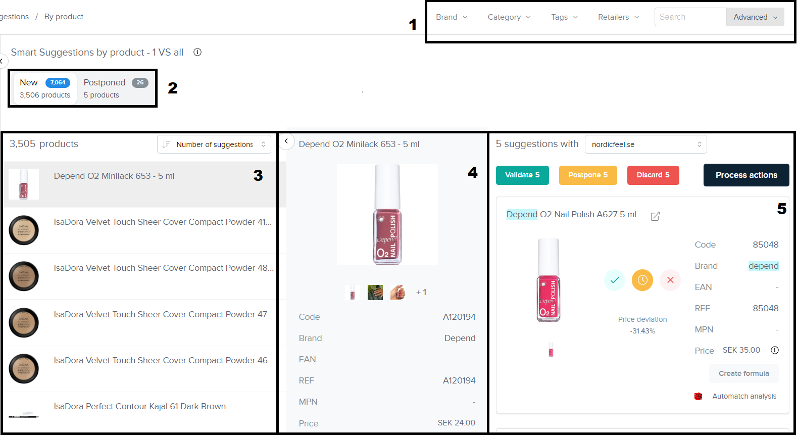 这些匹配建议是基于与EAN代码以外的类似参考。在找到相同的EAN代码的情况下,系统会自动匹配产品,因为这种参考是明确的。